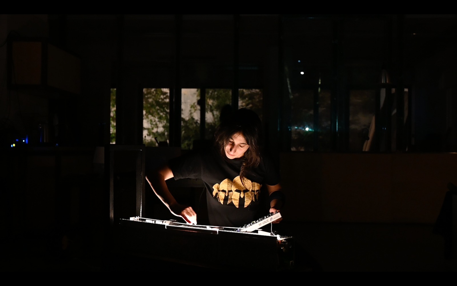 Produit, créé et interprété par Racha Baroud et Kinda Hassan, 2025When Adjusted to Darkness est une performance érigée à la base d’une composition sonore et qui retranscrit la manière dont nous vivons intimement la guerre et l’exil. Née de l’urgence d’exprimer par le corps, le son et la voix ce que les mots ne peuvent plus porter, elle cherche à reprendre, l’espace d’un instant, une forme de contrôle au cœur de l’impuissance que nous impose l’obscurité de notre époque.